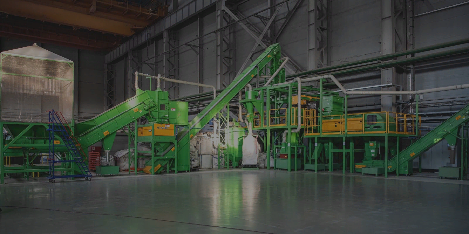 Гидравлические пресса, дробилки, шредеры, гильотины, агломераторы, ленточные транспортёры.